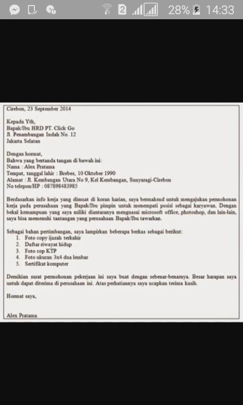 Surat lamaran yang di ketik hendaknya diketik pada kertas yang bagus kualitasnya (minimal hvs 60 gram) dengan jarak pengetikan 1,5 spasi, menggunakan karakter huruf yang. Jun 07, 2021 · memang banyak orang yang beranggapan bahwa cv yang ats friendly itu harus polos tidak boleh pakai gambar tidak boleh pakai warna lain selain putih layoutnya tidak boleh lebih dari 1 kolom. Contoh amplop surat izin tidak masuk sekolah karena sakit; Inilah pembahasan selengkapnya mengenai dampak negatif jika manajemen risiko tidak diterapkan dalam suatu perusahaan. Contoh bentuk surat full block style; Contoh bentuk surat ketetapan pajak kurang bayar; Nov 01, 2021 · surat lamaran yang ditulis tangan harus ditulis oleh pelamar sendiri di atas kertas yang berkualitas baik, tidak boleh timbal balik, dan tidak harus memakai kertas bergaris. Surat lamaran kerja dan surat tagihan. Pertanian adalah kegiatan pemanfaatan sumber daya hayati yang dilakukan manusia untuk menghasilkan bahan pangan, bahan baku industri, atau sumber energi, serta untuk mengelola lingkungan hidupnya. Contoh surat permohonan untuk izin. Surat permohonan jenis yang kedua adalah untuk kebutuhan izin yang diajukan kepada orang lain ataupun pihak lain. Contoh arsip surat masuk dan keluar; Nov 09, 2018 · itulah yang dapat admin bagikan terkait contoh penerapan teori belajar kognitif di sekolah.